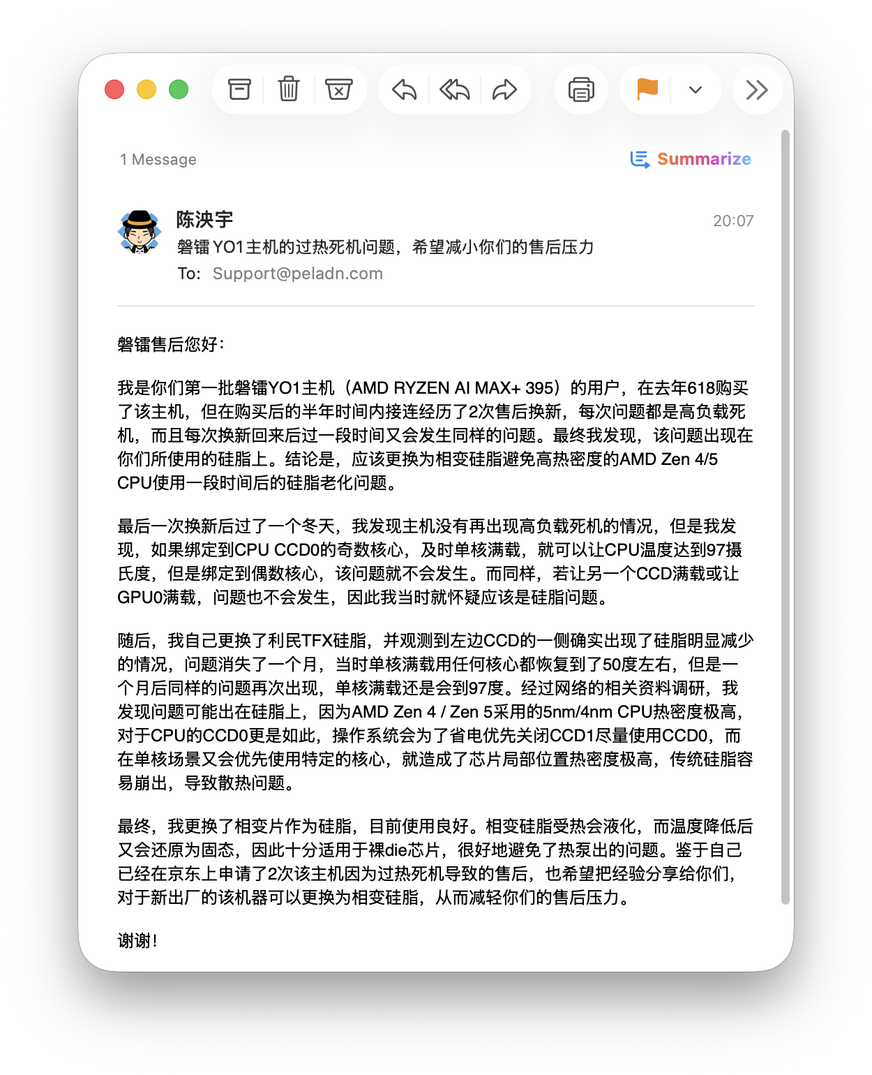 我也给小主机的厂商发了邮件,之前给他们反馈过 AMD AGESA 版本问题得到了回复,希望这次也会。