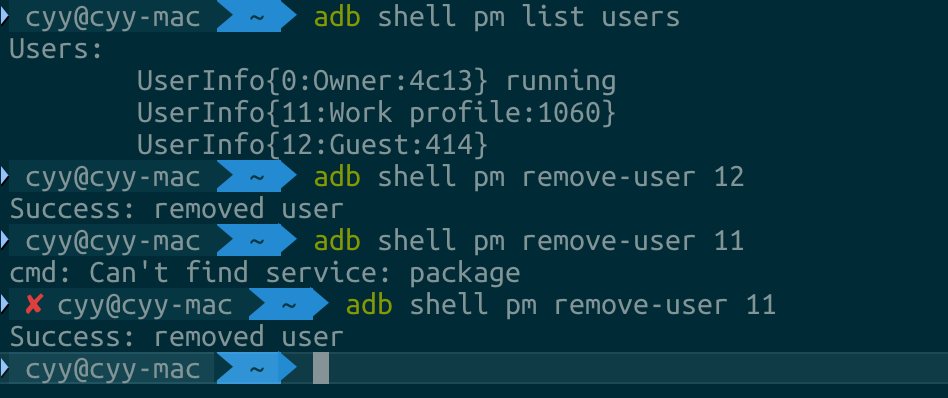 随后我在自己手机进行了测试,确实这样就可以删除 Island 创建的 User,Work Profile 以及 Clone 的 App 也随之消失。那么大胆猜想:也许我们只要在 shell 执行 pm remove user ${WORK_PROFILE_ID} ,问题就可以解决!即使不能解决,只要有了 ADB,我们大概也有 114514 种方法救出手机里的资料。